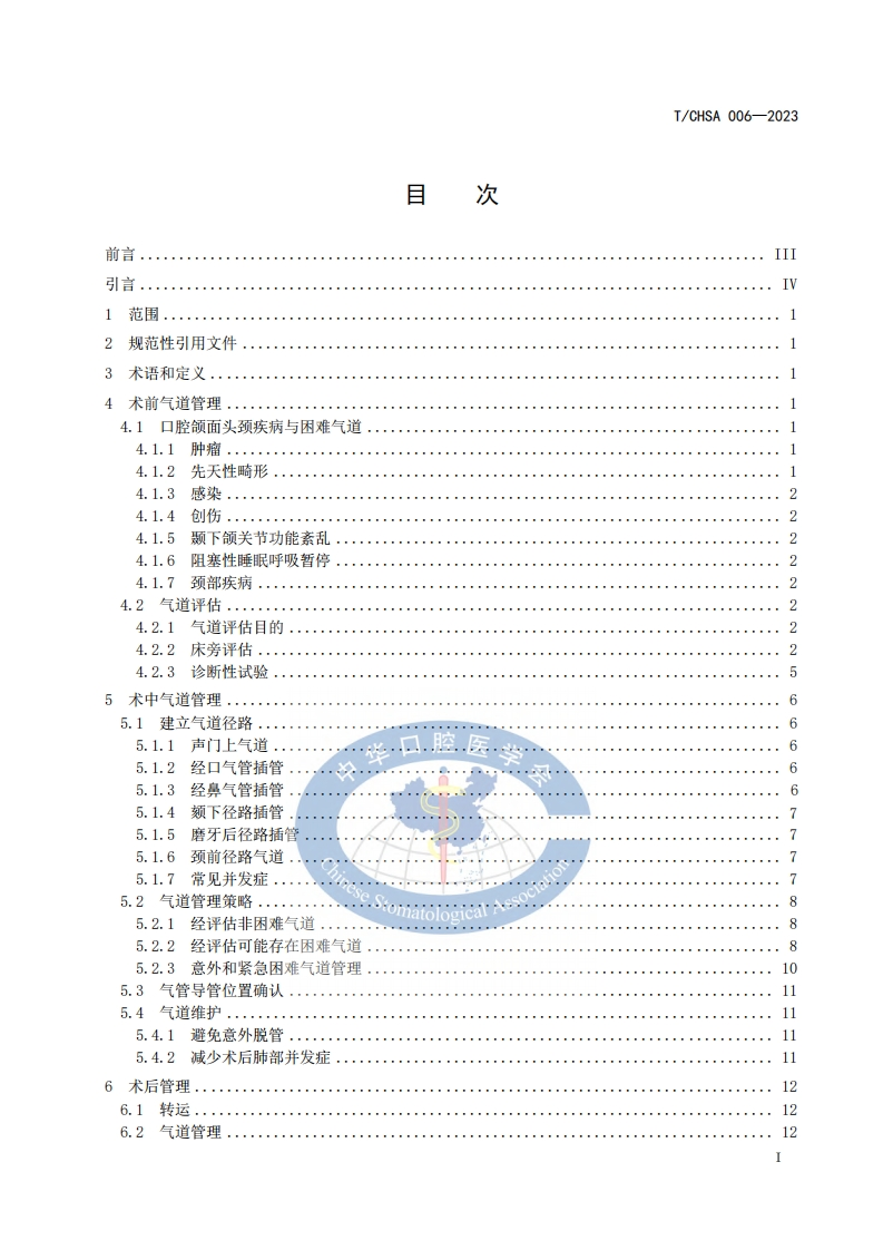 ICS11.060CCS C05中华口腔医学会团体标准T/CHSA006-2023口腔颌面头颈手术围术期气道管理指南Guideline of perioperative airway management of neck and oral-maxillo-facialsurgery口至Aninese Stomatological Associatiol2023-05-19发布2023-06-01实施中华口腔医学会发布