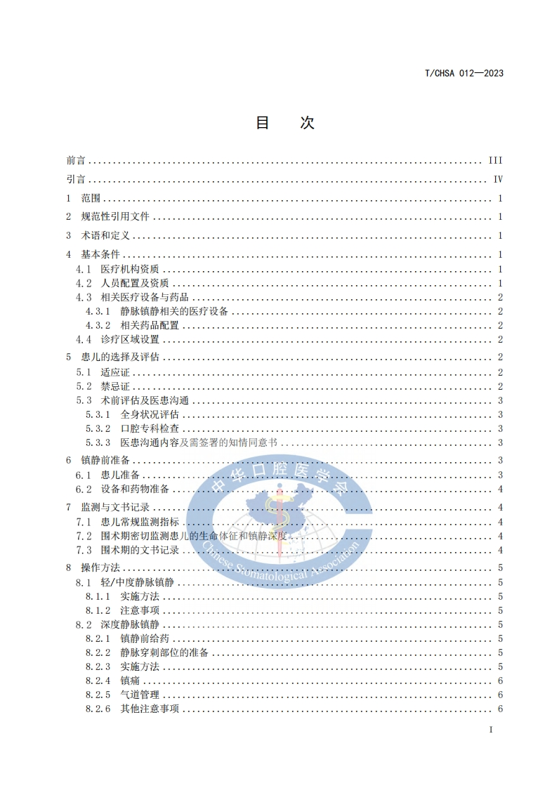 ICS11.060.01CCS C05中华口腔医学会团体标准T/CHSA012-2023儿童口腔疾病治疗中静脉镇静技术规范Standard on intravenous sedation techniques for children undergoing dental treatment口空学ninese Stomatological Associatiol2023-05-19发布2023-06-01实施中华口腔医学会发布