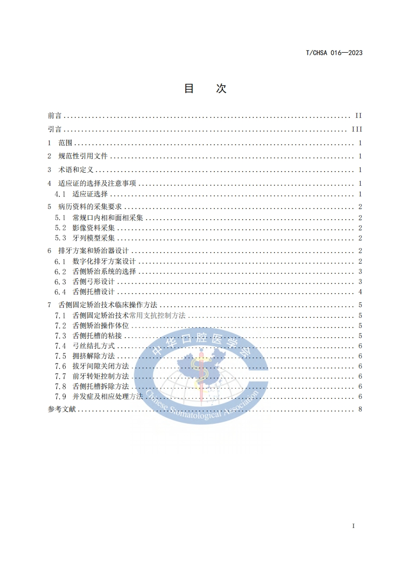 ICS11.060.01CCS C05中华口腔医学会团体标准T/CHSA016-2023口腔正畸数字化个性化舌侧固定矫治技术规范Clinical technical specifications of digital customized lingual orthodontics中半口空玉学ninese Stomatological Associafionl2023-05-19发布2023-06-01实施中华口腔医学会发布