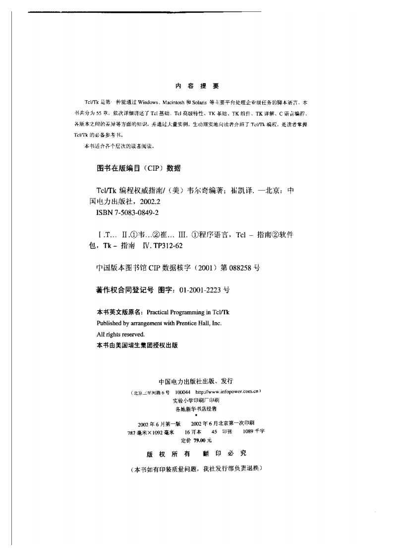 Tcl_TK编程权威指南348072@abc4个月前发布关注私信20.19MB715页033Tcl_TK编程权威指南此内容为付费资源,请付费后查看¥13¥23黄金会员免费钻石会员免费立即购买您当前未登录!建议登陆后购买,可保存购买订单付费资源 第1页 / 共715页 第2页 / 共715页 试读已结束,还剩713页,您可下载完整版后进行离线阅读 THE END标准规范 文本预览 1开源软件丛书Tcl/Tk编程权威指南Brent B.Welch,/著崔凯/译本书配有光盘,需要老请到啊路光益实验室拷项中图电力虫版社 查看更多 收起部分 喜欢就支持一下吧收藏