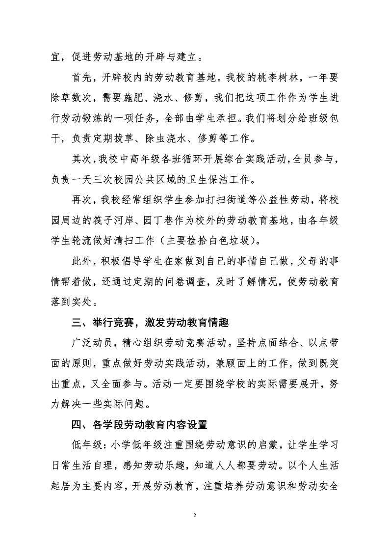 什邡外国语小学2023年劳动教育工作方案为进一步全面推进素质教育,促进学生的全面发展,加强我校劳动教育,扎实推进劳动教育课程和评价改革,构建德智体美劳全面发展的育人体系,贯彻立德树人的根本任务,落实《中共中央国务院关于全面加强新时代大中小学劳动教育的意见》《大中小学劳动教育指导纲要(试行)》和《深化新时代教育评价改革总体方案》要求,现就什邡外国语小学劳动教育工作制定如下方案:一、加强学习,确立劳动教育的地位组织教师学习相关文件,从培养目标的高度,理解劳动教育的重要性和迫切性。明确劳动教育的目的、任务和要求;学习各地劳动教育的先进经验,增强教育工作的时代感。同时,利用家长会,宣传劳动教育的意义和劳动教育的重要性,要求家长协助学校开展这方面的教育。做好“三保证”:我们把劳动教育列入工作计划,学期结束时评估优劣;二要订好劳动教材和手工劳动材料,做到人手一册,一人一份,保证劳动教育材料;三要建立劳动教育检查制度,保证劳动教育的正常性,从而确立劳动教育的地位,促进劳动教育的顺利开展。二、因地制宜,开辟劳动教育基地劳动基地是进行劳动教育的物质保证。我们除在劳动课中认真进行爱劳动的教育和手工劳动实践外,还从实际出发,因地制