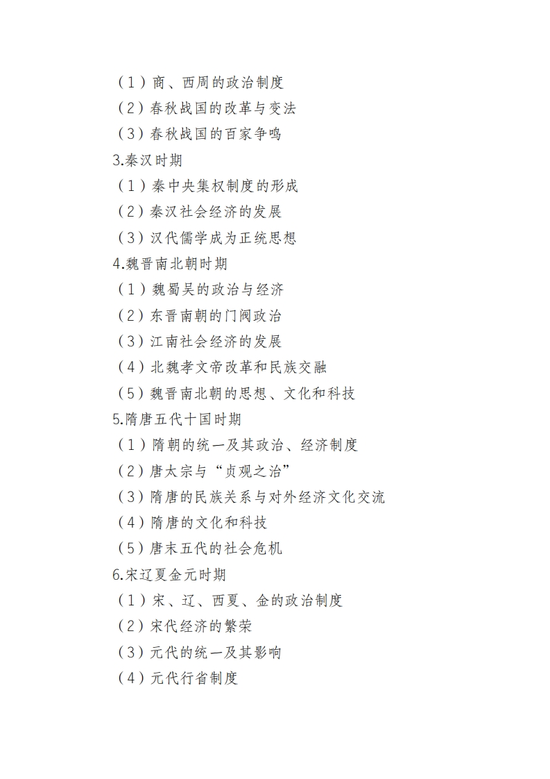 安徽省2023年中小学教师公开招聘省命题考试中学历史学科笔试大纲一、考试目标与要求(一)考查考生掌握基本史实,了解中外历史发展进程中的重要历史人物、重大历史事件、历史发展的阶段特征和基本线索。(二)考查考生掌握基本的史学理论,能正确运用辩证唯物主义和历史唯物主义的观点,比较、分析和评价历史事件和人物。(三)考查考生了解历史研究动态和中学历史教学现状,运用所学知识辨析和解读历史材料的能力。(四)考查考生了解中学历史教学的基本理论、基本方法和基本技能,并能在教学中加以运用的能力。(五)考查考生对《义务教育历史课程标准(2022年版)》《普通高中历史课程标准(2017年版2020年修订)》的了解和掌握。二、考试范围与内容(一)学科专业知识第一部分:中国古代史1.史前时期(1)中国远古时代的人类(2)中国新石器文化2.夏商周时期