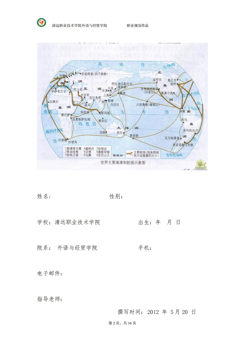 大学国贸专业(货代员)职业生涯规划.348072@abc3个月前发布关注私信0.92MB17页050大学国贸专业(货代员)职业生涯规划.此内容为付费资源,请付费后查看¥13¥23黄金会员免费钻石会员免费立即购买您当前未登录!建议登陆后购买,可保存购买订单付费资源 第1页 / 共17页 第2页 / 共17页 试读已结束,还剩15页,您可下载完整版后进行离线阅读 THE END招生策划 文本预览 清远职业技术学院外语与经贸学院职业规划作品清远职业技术学院外语与经贸学院第六届大学生职业生涯规划大赛设计书着选职业枝术学Qingyuan Polytechnic规划年限:10年职业方向:对外经济贸易总目标:创立专业外贸公司起止时间:2012年-—2022年第1页,共16页 查看更多 收起部分 喜欢就支持一下吧收藏