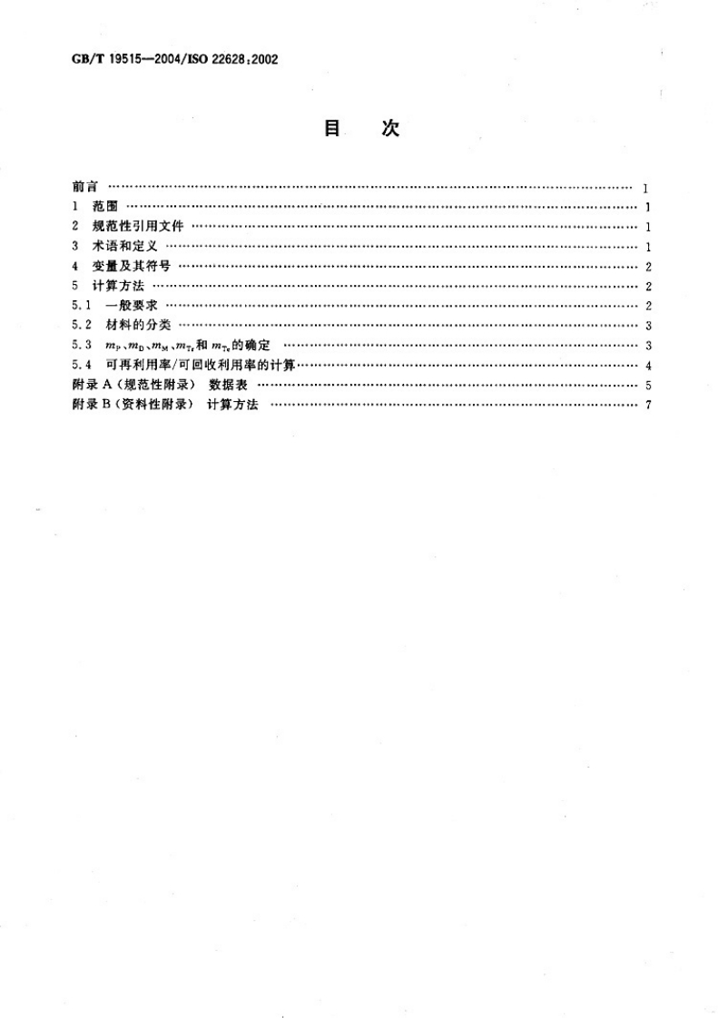 1Cs43.020T40B中华人民共和国国家标准GB/T19515-2004/1S022628:2002道路车辆可再利用性和可回收利用性计算方法Road vehicles--Recvelability and recoverability-Calculation method(1S()22628:2002.II)T)2004-05-17发布2004-11-01实施中华人民共和国国家质量监督检验检疫总局中国国家标准化管理委员会发布