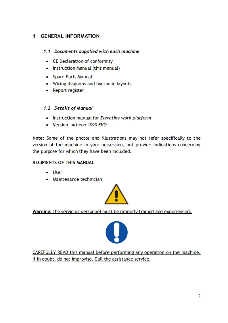 Athena-1090-EVO-Operations-Manual操作与维护保养说明书手册348072@abc20天前发布关注私信7.62MB182页034Athena-1090-EVO-Operations-Manual操作与维护保养说明书手册此内容为付费资源,请付费后查看¥49¥59黄金会员免费钻石会员免费立即购买您当前未登录!建议登陆后购买,可保存购买订单付费资源 第1页 / 共182页 第2页 / 共182页 试读已结束,还剩180页,您可下载完整版后进行离线阅读 THE END说明书手册 文本预览 ATHENAATHENA 1090 EVOTranslation of original instructionsPrior to commissioning the machine read carefully this Use andMaintenance ManualNote:table of contents at the end of the manualEditionDate0115/03/2017 查看更多 收起部分 喜欢就支持一下吧收藏