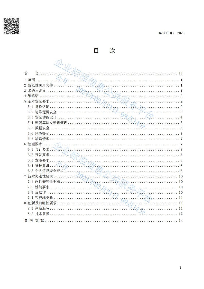 10535.240.40A11QGLB桂林银行股份有限公司企业标准Q/GLB03-2023代替QGLB03-2022企业标佳信息公共服公开2024年02月移动金融客户端应用软件安全管理规范Financial mobile application software security management specification企业标准信息公共服务平台公开2024年02月21日09点14分2020-8-31发布2020-8-31实施桂林银行股份有限公司发布