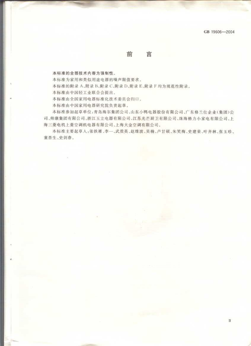 家用和类似用途电器噪声限值-Noise-limit-value-for-househould-and-similar-electrical-appliances348072@abc20天前发布关注私信0.55MB11页048家用和类似用途电器噪声限值-Noise-limit-value-for-househould-and-similar-electrical-appliances此内容为付费资源,请付费后查看¥39¥49黄金会员免费钻石会员免费立即购买您当前未登录!建议登陆后购买,可保存购买订单付费资源 第1页 / 共11页 第2页 / 共11页 试读已结束,还剩9页,您可下载完整版后进行离线阅读 THE END说明书手册 文本预览 1CS97.030Y60GB中华人民共和国国家标准GB19606-2004家用和类似用途电器噪声限值Noise limit value for househould and similar electrical appliances2004-12-13发布2005-08-01实施中华人民共和国国家质量监督检验检疫总局中国国家标准化管理委员会发布 查看更多 收起部分 喜欢就支持一下吧收藏