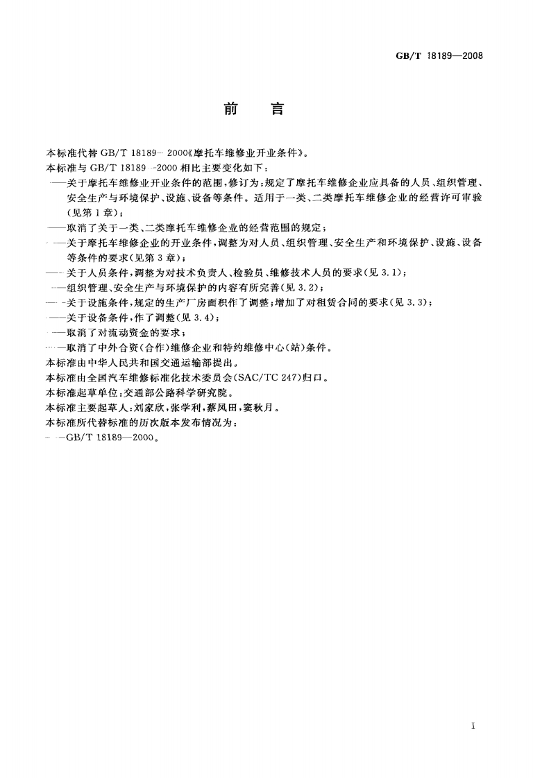 摩托车维修业开业条件-Requirements-for-industry-of-motorcycle-maintenance-and-repair-being-managed348072@abc19天前发布关注私信67.68KB4页040摩托车维修业开业条件-Requirements-for-industry-of-motorcycle-maintenance-and-repair-being-managed此内容为付费资源,请付费后查看¥39¥49黄金会员免费钻石会员免费立即购买您当前未登录!建议登陆后购买,可保存购买订单付费资源 第1页 / 共4页 第2页 / 共4页 试读已结束,还剩2页,您可下载完整版后进行离线阅读 THE END说明书手册 文本预览 1CS43.180R16中华人民共和国国家标准GB/T18189-2008代替GB/T18189-2000摩托车维修业开业条件Requirements for industry of motorcycle maintenanceand repair being managed2008-10-21发布2009-04-01实施中华人民共和国国家质量监督检验检疫总局中国国家标准化管理委员会发布 查看更多 收起部分 喜欢就支持一下吧收藏
