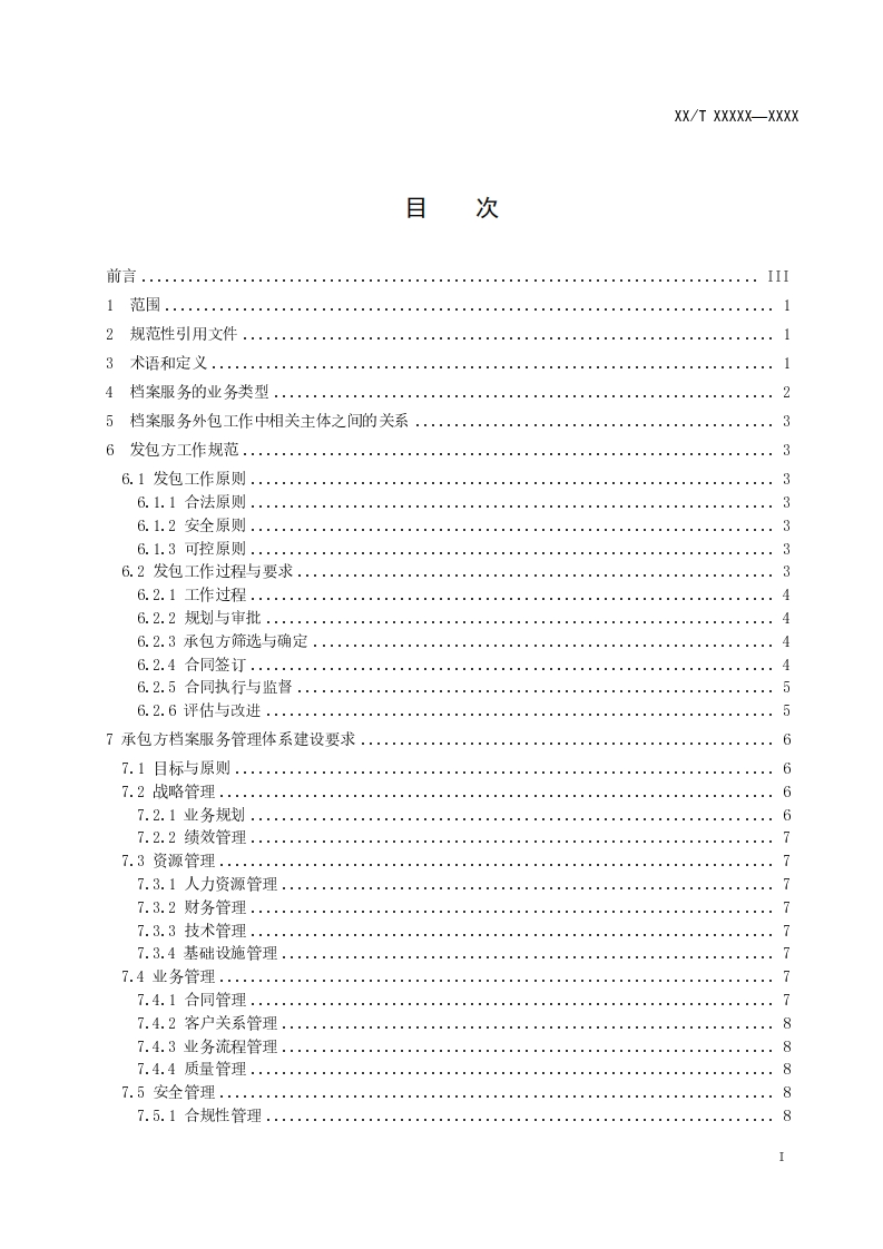 档案服务外包工作规范-Specifications-on-the-work-of-archives-service-outsourcing-点击此处添加与国际标准一致性程度的标识-报批稿348072@abc18天前发布关注私信0.64MB24页029档案服务外包工作规范-Specifications-on-the-work-of-archives-service-outsourcing-点击此处添加与国际标准一致性程度的标识-报批稿此内容为付费资源,请付费后查看¥39¥49黄金会员免费钻石会员免费立即购买您当前未登录!建议登陆后购买,可保存购买订单付费资源 第1页 / 共24页 第2页 / 共24页 试读已结束,还剩22页,您可下载完整版后进行离线阅读 THE END说明书手册 文本预览 ICS01.140.20A14中华人民共和国档案行业标准DA/T68-2017档案服务外包工作规范Specifications on the work of archives service outsourcing点击此处添加与国际标准一致性程度的标识(报批稿)XXXX-XX-XX发布XXXX-Xx-XX实施国家档案局发布 查看更多 收起部分 喜欢就支持一下吧收藏
