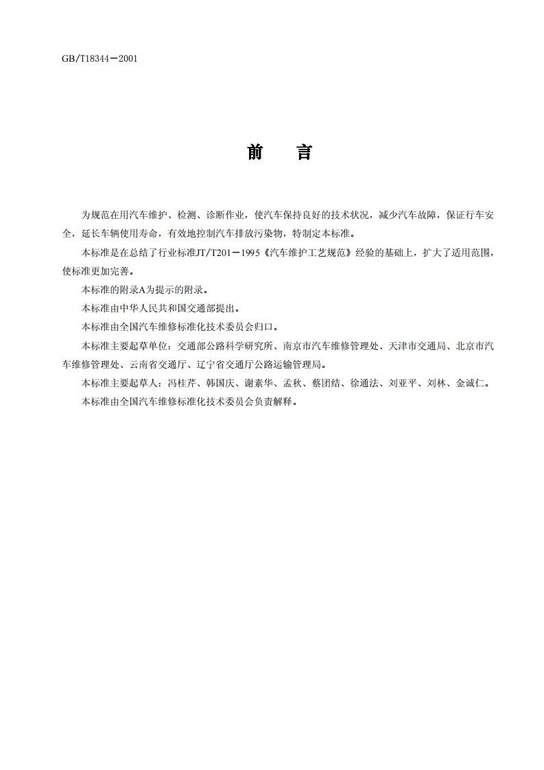 汽车维护、检测、诊断技术规范-Specification-for-the-inspection-and-maintenance-of-motor-venicle348072@abc19天前发布关注私信0.27MB12页030汽车维护、检测、诊断技术规范-Specification-for-the-inspection-and-maintenance-of-motor-venicle此内容为付费资源,请付费后查看¥39¥49黄金会员免费钻石会员免费立即购买您当前未登录!建议登陆后购买,可保存购买订单付费资源 第1页 / 共12页 第2页 / 共12页 试读已结束,还剩10页,您可下载完整版后进行离线阅读 THE END说明书手册 文本预览 ICS43.180R16中华人民共和国国家标准GB/T18344-2001汽车维护、检测、诊断技术规范Specification for the inspection andmaintenance of motor vehicle2001-03-26发布2001-12-01实施国家质量技术监督局发布 查看更多 收起部分 喜欢就支持一下吧收藏