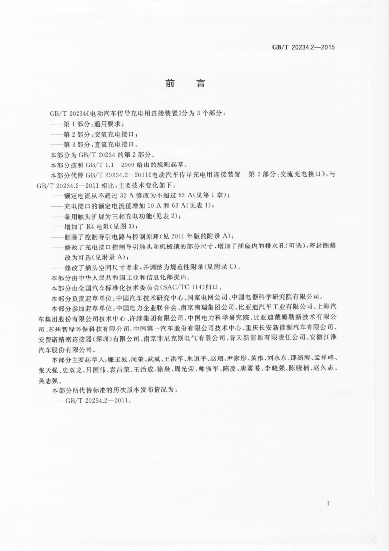 1Cs43.040.99T35GB中华人民共和国国家标准GB/T20234.2-2015代替GB/T20234.2-2011电动汽车传导充电用连接装置第2部分:交流充电接口Connection set for conductive charging of electric vehicles-Part 2:AC charging coupler2015-12-28发布2016-01-01实施中华人民共和国国家质量监督检验检疫总局中国国家标准化管理委员会发布