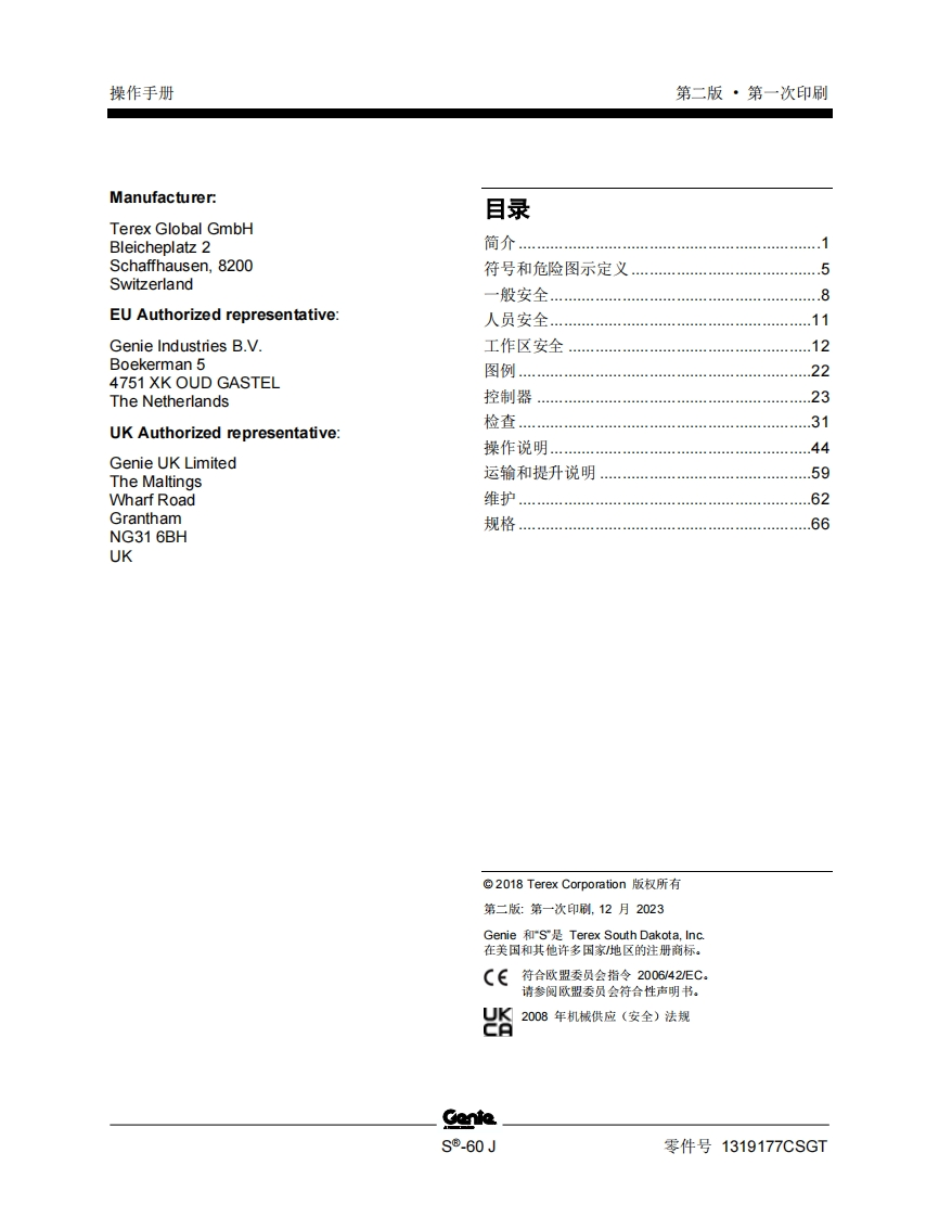GENIE吉尼—60-J-序列号范围曲臂吊高空作业平台操作说明书手册348072@abc20天前发布关注私信2.96MB74页049GENIE吉尼—60-J-序列号范围曲臂吊高空作业平台操作说明书手册此内容为付费资源,请付费后查看¥39¥49黄金会员免费钻石会员免费立即购买您当前未登录!建议登陆后购买,可保存购买订单付费资源 第1页 / 共74页 第2页 / 共74页 试读已结束,还剩72页,您可下载完整版后进行离线阅读 THE END说明书手册 文本预览 GenieA TEREX BRAND操作手册序列号范围S®-60J带有维修信息原始说明的翻译Second EditionFirst PrintingPart No.1319177CSGT 查看更多 收起部分 喜欢就支持一下吧收藏