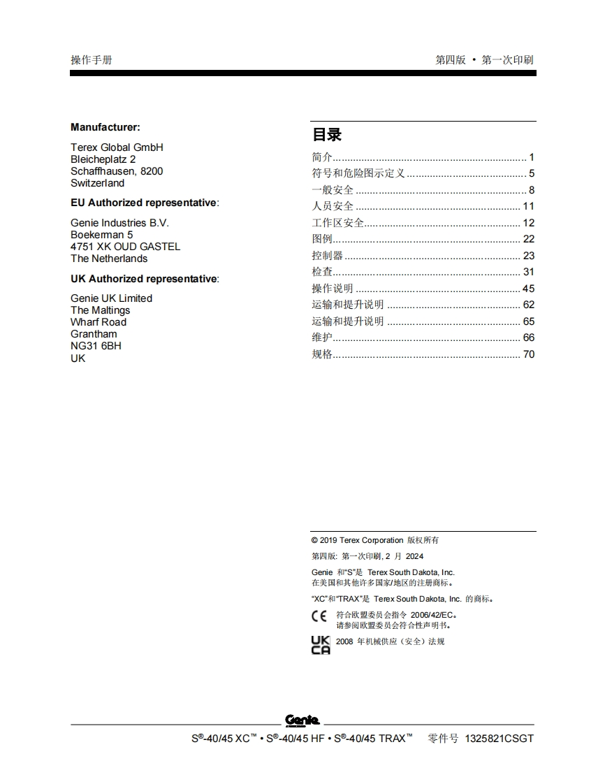 GENIE吉尼-s-40-XC…–45-XC™—40-HF—45-HF–40-TRAX_–45-TRAX_-序列号范围曲臂吊高空作业平台操作说明书手册348072@abc19天前发布关注私信3.44MB84页038GENIE吉尼-s-40-XC…–45-XC™—40-HF—45-HF–40-TRAX_–45-TRAX_-序列号范围曲臂吊高空作业平台操作说明书手册此内容为付费资源,请付费后查看¥39¥49黄金会员免费钻石会员免费立即购买您当前未登录!建议登陆后购买,可保存购买订单付费资源 第1页 / 共84页 第2页 / 共84页 试读已结束,还剩82页,您可下载完整版后进行离线阅读 THE END说明书手册 文本预览 GenieA TEREX BRAND操作手册序列号范围S®-40XCmS®.45XCTMS®.40HFS®.45HFS®.401RAXTMS®.45 TRAXTM带有维修信息原始说明的翻译Fourth EditionFirst PrintingPart No.1325821CSGT 查看更多 收起部分 喜欢就支持一下吧收藏