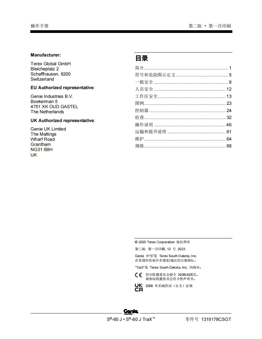 GENIE吉尼-se-80-J–e-80-J-TraX™-序列号范围曲臂吊高空作业平台操作说明书手册348072@abc18天前发布关注私信4.05MB76页024GENIE吉尼-se-80-J–e-80-J-TraX™-序列号范围曲臂吊高空作业平台操作说明书手册此内容为付费资源,请付费后查看¥39¥49黄金会员免费钻石会员免费立即购买您当前未登录!建议登陆后购买,可保存购买订单付费资源 第1页 / 共76页 第2页 / 共76页 试读已结束,还剩74页,您可下载完整版后进行离线阅读 THE END说明书手册 文本预览 GenieA TEREX BRAND操作手册序列号范围S®-80JS®-80 JTraxTM带有维修信息原始说明的翻译Second EditionFirst PrintingPart No.1319178CSGT 查看更多 收起部分 喜欢就支持一下吧收藏