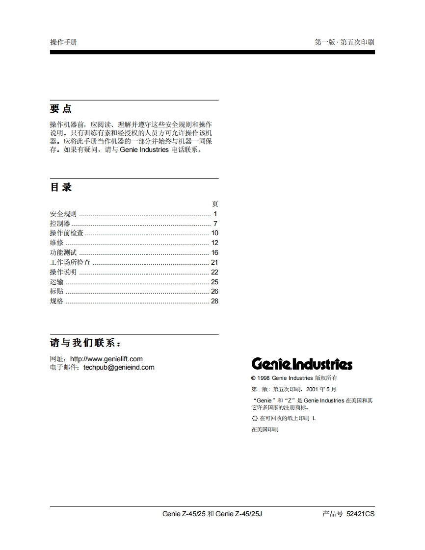 GENIE吉尼-Z-45125-Z-45125J曲臂吊高空作业平台操作说明书手册348072@abc18天前发布关注私信12.02MB32页036GENIE吉尼-Z-45125-Z-45125J曲臂吊高空作业平台操作说明书手册此内容为付费资源,请付费后查看¥39¥49黄金会员免费钻石会员免费立即购买您当前未登录!建议登陆后购买,可保存购买订单付费资源 第1页 / 共32页 第2页 / 共32页 试读已结束,还剩30页,您可下载完整版后进行离线阅读 THE END说明书手册 文本预览 Gonie操作手册First EditionFifth Printing及维修信息Part No.52421CSZ-45/25Z.45/25J 查看更多 收起部分 喜欢就支持一下吧收藏
