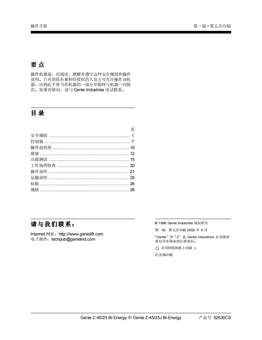 GENIE吉尼-Z-45_25-Bi-Energy-Z-45_25J-Bi-Energy曲臂吊高空作业平台操作说明书手册348072@abc18天前发布关注私信10.54MB31页034GENIE吉尼-Z-45_25-Bi-Energy-Z-45_25J-Bi-Energy曲臂吊高空作业平台操作说明书手册此内容为付费资源,请付费后查看¥39¥49黄金会员免费钻石会员免费立即购买您当前未登录!建议登陆后购买,可保存购买订单付费资源 第1页 / 共31页 第2页 / 共31页 试读已结束,还剩29页,您可下载完整版后进行离线阅读 THE END说明书手册 文本预览 Gonie操作手册First EditionFifth Printing及维修信息Part No.52630CSZ45/25 Bi-EnergyZ45/25J Bi-Energy 查看更多 收起部分 喜欢就支持一下吧收藏