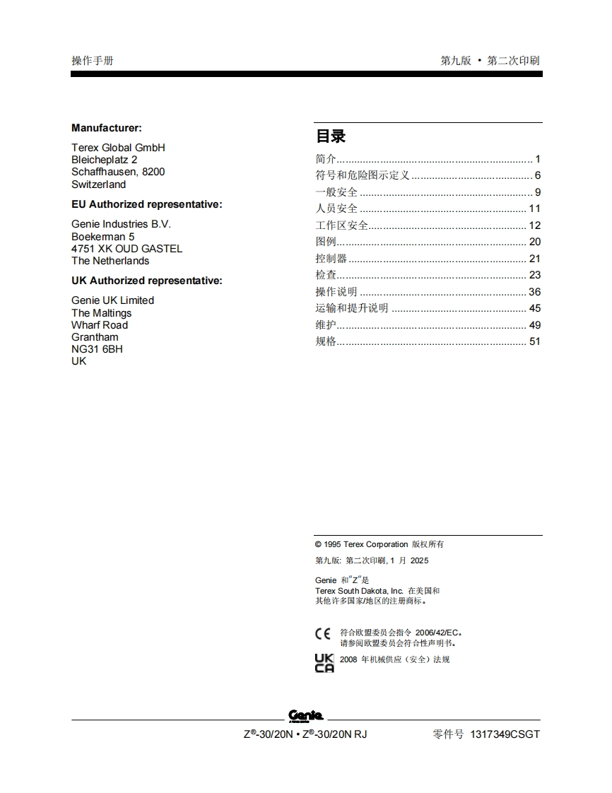GENIE吉尼-序列号范围—30_20N-_30_2ON-RJ-Z30ND-2344-之后-Z30NF-23335-之后曲臂吊高空作业平台操作说明书手册348072@abc18天前发布关注私信2.34MB57页039GENIE吉尼-序列号范围—30_20N-_30_2ON-RJ-Z30ND-2344-之后-Z30NF-23335-之后曲臂吊高空作业平台操作说明书手册此内容为付费资源,请付费后查看¥39¥49黄金会员免费钻石会员免费立即购买您当前未登录!建议登陆后购买,可保存购买订单付费资源 第1页 / 共57页 第2页 / 共57页 试读已结束,还剩55页,您可下载完整版后进行离线阅读 THE END说明书手册 文本预览 GenieA TEREX BRAND操作手册序列号范围Z®.30/20NZ30ND-2344之后Z30NF-23335之后Z®.30/20NRJ带有维修信息原始说明的翻译Ninth EditionSecond PrintingPart No.1317349CSGT 查看更多 收起部分 喜欢就支持一下吧收藏