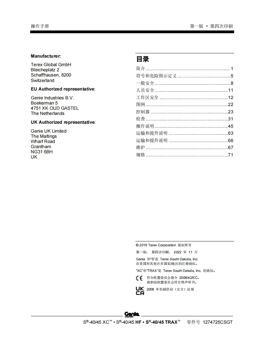 GENIE吉尼-序列号范围—40-XC_–45-XC_—40-HF—-45-HF–40-TRAX_–45-TRAX-S40XCH-101-之后-S45XCH-101-之后-S45XCD-101-之后曲臂吊高空作业平台操作说明书手册348072@abc18天前发布关注私信3.28MB85页036GENIE吉尼-序列号范围—40-XC_–45-XC_—40-HF—-45-HF–40-TRAX_–45-TRAX-S40XCH-101-之后-S45XCH-101-之后-S45XCD-101-之后曲臂吊高空作业平台操作说明书手册此内容为付费资源,请付费后查看¥39¥49黄金会员免费钻石会员免费立即购买您当前未登录!建议登陆后购买,可保存购买订单付费资源 第1页 / 共85页 第2页 / 共85页 试读已结束,还剩83页,您可下载完整版后进行离线阅读 THE END说明书手册 文本预览 GenieA TEREX BRAND操作手册序列号范围S®.40XCmS40XCH101之后S45XCH-101之后S45XCD-101之后S®.45XCmS®.40HFS®-45HFS®-40 TRAXTMS®.45 TRAXTM带有维修信息原始说明的翻译First EditionFourth PrintingPart No.1274725CSGT 查看更多 收起部分 喜欢就支持一下吧收藏