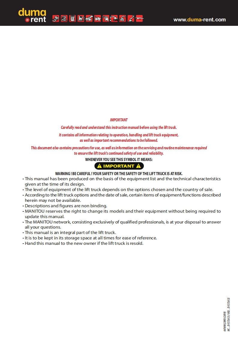 dumarent缀恩围斯南好商尼写习www.duma-rent.comMANTOUHANDLING YOUR WORLD647690EN(29/01/2019)MC 25-2 D K ST3A S1MC 25-4 DK ST3A S1MC 30-2 DK ST3A S1MC 30-4 DK ST3A S1MSI 25 DK ST3A S5MSI 30 D K ST3A S5MSI35 D K ST3A S5OPERATOR'S MANUAL(ORIGINAL INSTRUCTIONS)