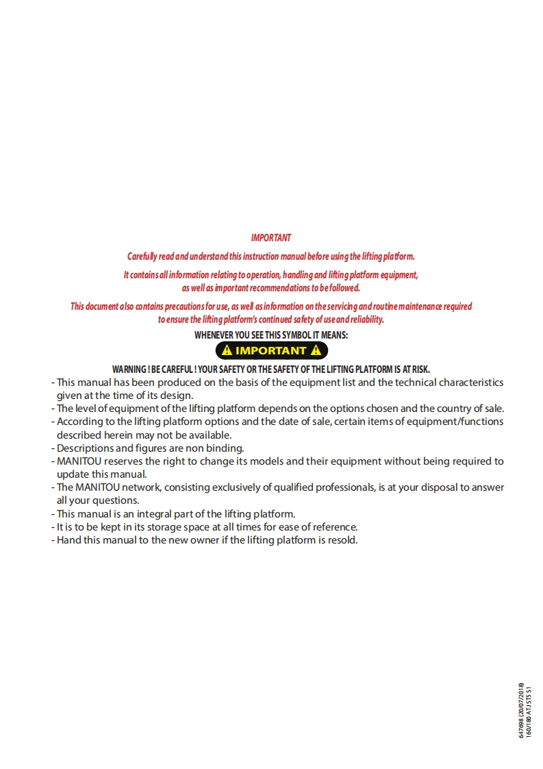Manitou160ATJ-Operations-Manual操作与维护保养说明书手册348072@abc20天前发布关注私信9.63MB146页049Manitou160ATJ-Operations-Manual操作与维护保养说明书手册此内容为付费资源,请付费后查看¥29¥39黄金会员免费钻石会员免费立即购买您当前未登录!建议登陆后购买,可保存购买订单付费资源 第1页 / 共146页 第2页 / 共146页 试读已结束,还剩144页,您可下载完整版后进行离线阅读 THE END说明书手册 文本预览 ®ANITOUHANDLING YOUR WORLD647698EN(20/07/2018)160 ATJ RNC 4RD ST5 S1160 ATJ RC 4RD ST5 S1180 ATJ RNC 4RD ST5 S1180 ATJ RC 4RD ST5 S1OPERATOR'S MANUAL(ORIGINAL INSTRUCTIONS) 查看更多 收起部分 喜欢就支持一下吧收藏