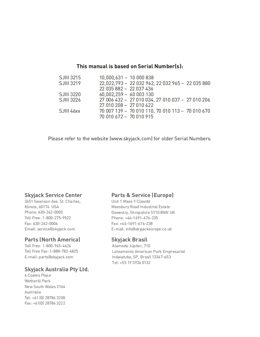 Skyjack-3220-Operators-Manual操作与维护保养说明书手册348072@abc20天前发布关注私信6.85MB96页027Skyjack-3220-Operators-Manual操作与维护保养说明书手册此内容为付费资源,请付费后查看¥29¥39黄金会员免费钻石会员免费立即购买您当前未登录!建议登陆后购买,可保存购买订单付费资源 第1页 / 共96页 第2页 / 共96页 试读已结束,还剩94页,您可下载完整版后进行离线阅读 THE END说明书手册 文本预览 MODELSSJII3215SJ3219SJII3220SJII3226SJI川川4626SJII川4632SKYACKKEEPCLEAROperating ManualSKYACKCompact Conventional Series (AS]157930AF-A February 2014SKYACK 查看更多 收起部分 喜欢就支持一下吧收藏