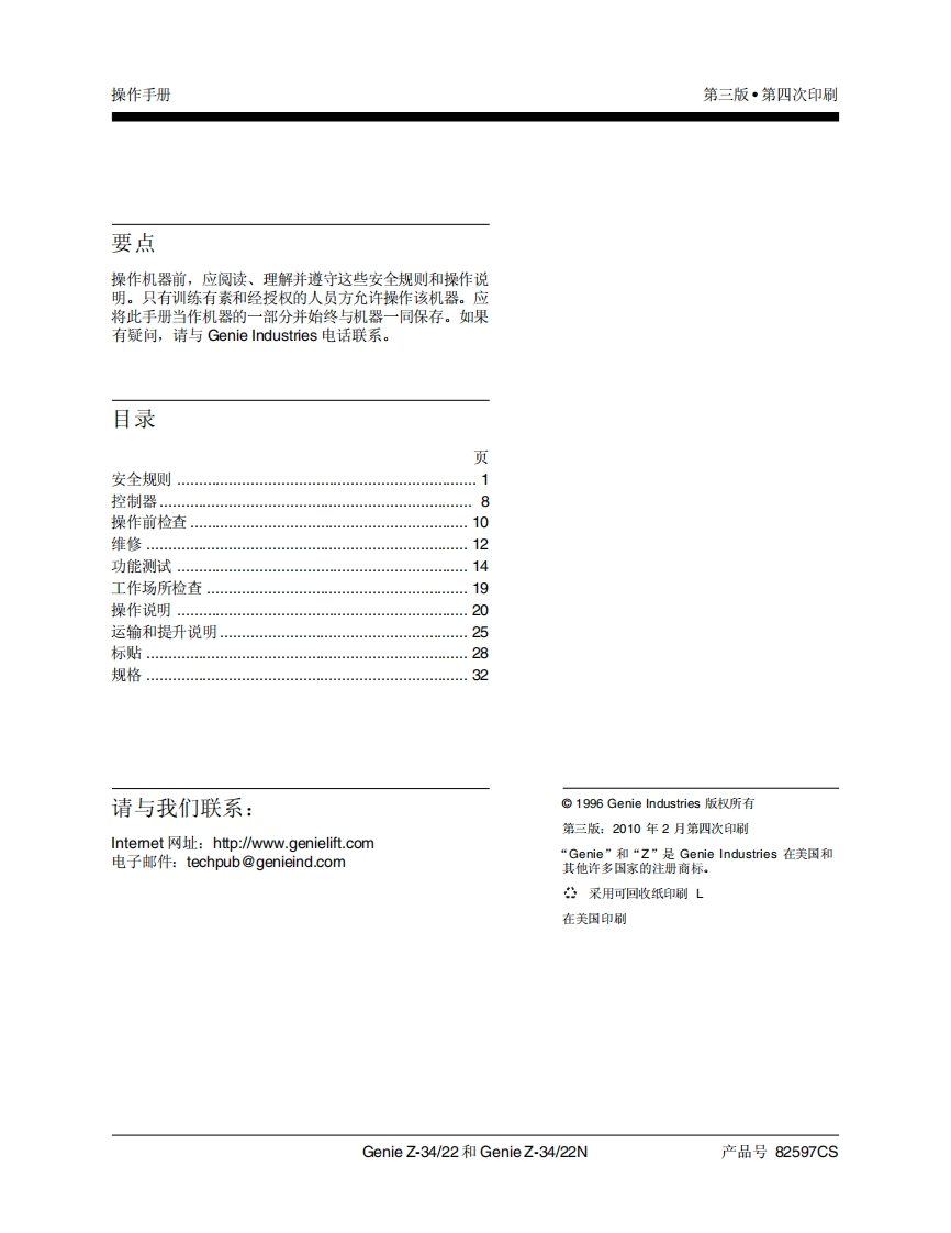 吉尼GENIE-操作手册-及维修信息-Z-34_22-从3578到4684-Z-34_22N-从-4621到5504-DC-Power曲臂吊高空作业平台操作说明书手册348072@abc19天前发布关注私信2.70MB37页047吉尼GENIE-操作手册-及维修信息-Z-34_22-从3578到4684-Z-34_22N-从-4621到5504-DC-Power曲臂吊高空作业平台操作说明书手册此内容为付费资源,请付费后查看¥29¥39黄金会员免费钻石会员免费立即购买您当前未登录!建议登陆后购买,可保存购买订单付费资源 第1页 / 共37页 第2页 / 共37页 试读已结束,还剩35页,您可下载完整版后进行离线阅读 THE END说明书手册 文本预览 Genie®操作手册Third EditionFourth Printing及维修信息Part No.82597CSZ34/22从3578到4684Z34/22N从4621到5504DC Power 查看更多 收起部分 喜欢就支持一下吧收藏