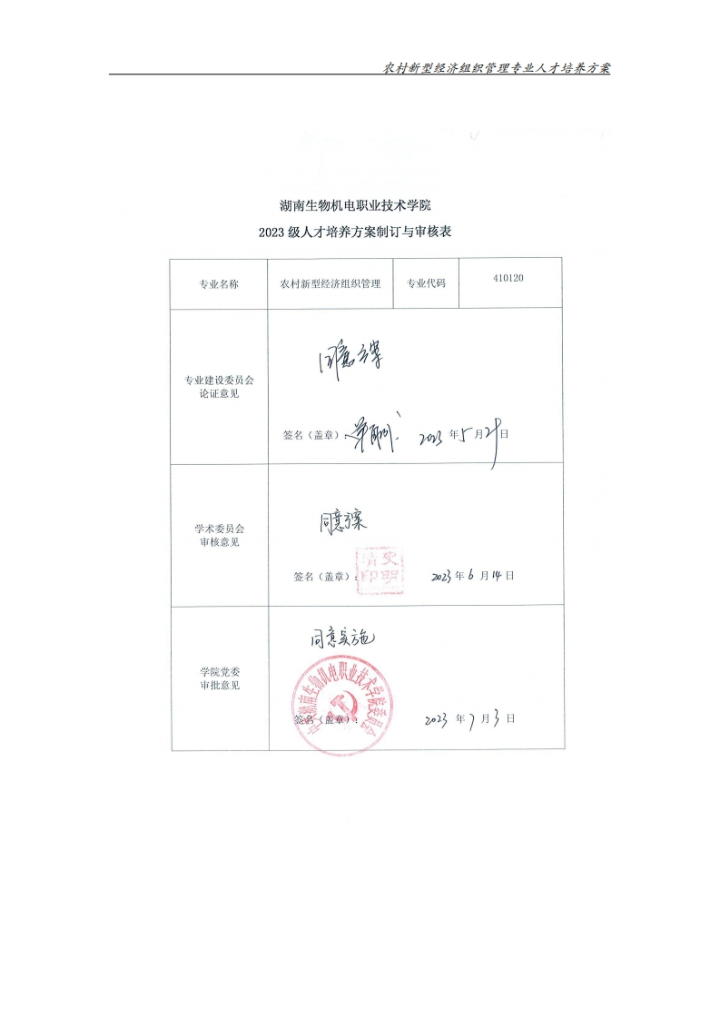 三年制高职农村新型经济组织管理专业方案人才培养养三年制高职农村新型经济组织管理专业人才培养方案专业名称养农村新型经济组织管理348072@abc昨天发布关注私信0.75MB41页042三年制高职农村新型经济组织管理专业方案人才培养养三年制高职农村新型经济组织管理专业人才培养方案专业名称养农村新型经济组织管理此内容为付费资源,请付费后查看¥23¥33黄金会员免费钻石会员免费立即购买您当前未登录!建议登陆后购买,可保存购买订单付费资源 第1页 / 共41页 第2页 / 共41页 试读已结束,还剩39页,您可下载完整版后进行离线阅读 THE END人工智能农学类办公模板医学类医疗医药单片机设计历史学类哲学类土木工程学习资源工学类教育学类文学类法学类理学类管理学类经济学类艺术学类 文本预览 农村新型经济组织管理专业人才培养方耄湖南生物機密虢紫技衍学院Hunan Biological And Electromechanical Polytechnic三年制高职农村新型经济组织管理专业人才培养方案专业名称:农村新型经济组织管理专业代码:410120适用年级:2023级专业负责人:李青阳所属学院:经济贸易学院所属专业群:农村经营管理专业群制订时间:2023年5月 查看更多 收起部分 喜欢就支持一下吧收藏