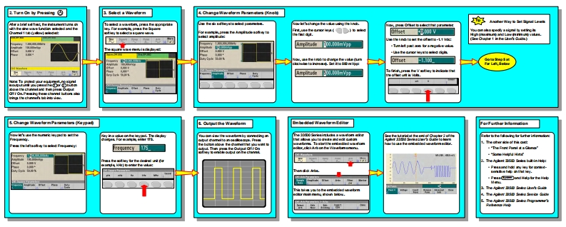 The Freet Pandl ata GlncaAgilent 33500 Series30 MHz Function /Arbitrary Waveform Generator(111.Quick Start TutorialSix easy steps to leam the basics!RL1gU轴Then plg in te.你The Agdert 200 SeriesaufcruicallymA85宽:8Rnno aal cheato aet or Laea色chnaThe Prmary FrontPanel和uat41 Port9国与ynct aPC catie to he O车udmrC年ye=,TumG城eaay写ea and told any Lrcton key or aotie与ec年t与p todcfa thut与or tat.C然IAgileat Taohaalogies33a