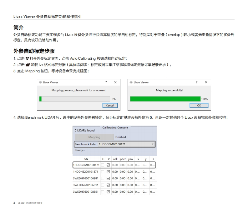 Auto-Extrinsics-Calibration-User-Guide-v1.0-chs348072@abc19天前发布关注私信0.30MB6页047Auto-Extrinsics-Calibration-User-Guide-v1.0-chs此内容为付费资源,请付费后查看¥49¥59黄金会员免费钻石会员免费立即购买您当前未登录!建议登陆后购买,可保存购买订单付费资源 第1页 / 共6页 第2页 / 共6页 试读已结束,还剩4页,您可下载完整版后进行离线阅读 THE END说明书手册 文本预览 Livox Viewer外参自动标定功能操作指引1.02021.03LI√▣XL-▣A只 查看更多 收起部分 喜欢就支持一下吧收藏