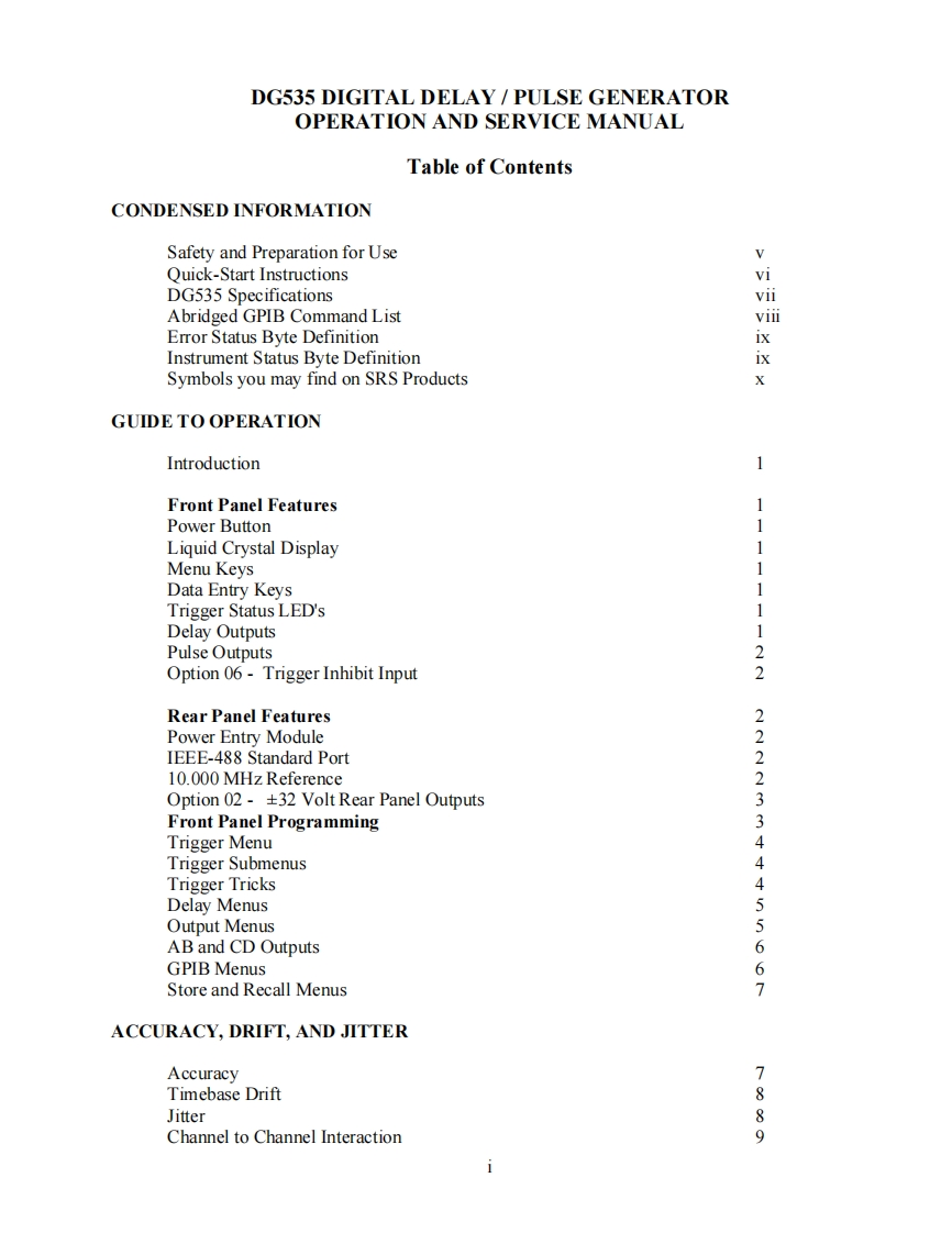 MODEL DG535Digital Delay /Pulse Generator5R5Stanford Research Systems1290-D Reamwood AvenueSunnyvale,CA 94089 U.S.A.Phone:(408)744-9040,Fax:(408)744-9049Copyright@1994,1997,2000All Rights ReservedRevision 2.902/2006