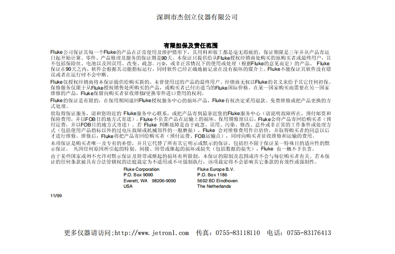 FLUKE724Temperature Calibrator用户手册深圳市杰创立仪器有限公司February 2000 Rev.1,8/03(Simplified Chinese)2000-2003 Rluke Coporafion,All rights reserved.All product names are trademarks of their respedive companies.更多仪器请访问:http:/www.jetronl.com传真:0755-83118110电话:0755-83176413