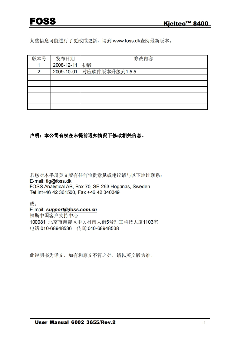 Kjeltec-TM-8400操作说明书手册348072@abc20天前发布关注私信4.87MB81页037Kjeltec-TM-8400操作说明书手册此内容为付费资源,请付费后查看¥49¥59黄金会员免费钻石会员免费立即购买您当前未登录!建议登陆后购买,可保存购买订单付费资源 第1页 / 共81页 第2页 / 共81页 试读已结束,还剩79页,您可下载完整版后进行离线阅读 THE END说明书手册 文本预览 Kjeltec TM 8400凯氏定氮仪用户手册60023655/Rev.2F055FOSS福斯中自客户旅务中心版权所有FOSS China CSC不得复制 查看更多 收起部分 喜欢就支持一下吧收藏