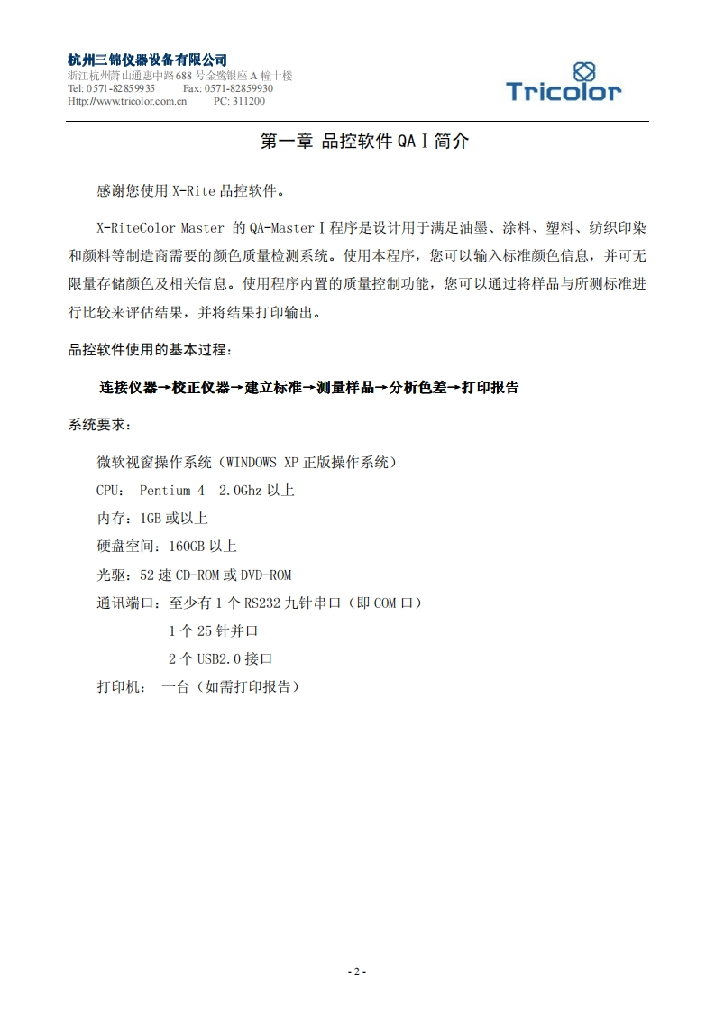 QA-I色彩品控软件操作手册348072@abc20天前发布关注私信1.87MB22页047QA-I色彩品控软件操作手册此内容为付费资源,请付费后查看¥49¥59黄金会员免费钻石会员免费立即购买您当前未登录!建议登陆后购买,可保存购买订单付费资源 第1页 / 共22页 第2页 / 共22页 试读已结束,还剩20页,您可下载完整版后进行离线阅读 THE END说明书手册 文本预览 杭州三第仪器设备有限公司浙江杭州萧山通惠中路688号金鹭银座A幢十楼Tel:0571-82859935FaX:0571-82859930Http://www.tricolor.com.cn PC:311200TricolorRX-RiteColor MasterQAI颜色品控软件操作指南1 查看更多 收起部分 喜欢就支持一下吧收藏