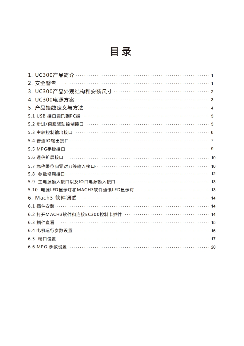 Dga☑联DREAMThe version of 20180925MACH3运动控制器UC300使用手册640466644464406600.Uc300¥0 EEEEEETEESEEESEETEEEEEICDigitalDream版权所有不得翻印【使用前请仔细阅读本手册,以免损坏控制器】深圳市众联拓数控科技有限公司Shenzhen Digital Dream Numerical Technology Co.,Ltd.