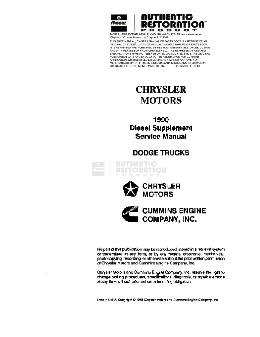 Dodge-RAM-PickUp-Truck-Diesel-Engine-Service-Manual维修维护手册-PDF348072@abc17天前发布关注私信4.37MB482页028Dodge-RAM-PickUp-Truck-Diesel-Engine-Service-Manual维修维护手册-PDF此内容为付费资源,请付费后查看¥49¥79黄金会员免费钻石会员免费立即购买您当前未登录!建议登陆后购买,可保存购买订单付费资源 第1页 / 共482页 第2页 / 共482页 试读已结束,还剩480页,您可下载完整版后进行离线阅读 THE END说明书手册 文本预览 990SERVICEMANUALREAR WHEEL DRIVERAM TRUCKDieselSupplement伏 查看更多 收起部分 喜欢就支持一下吧收藏