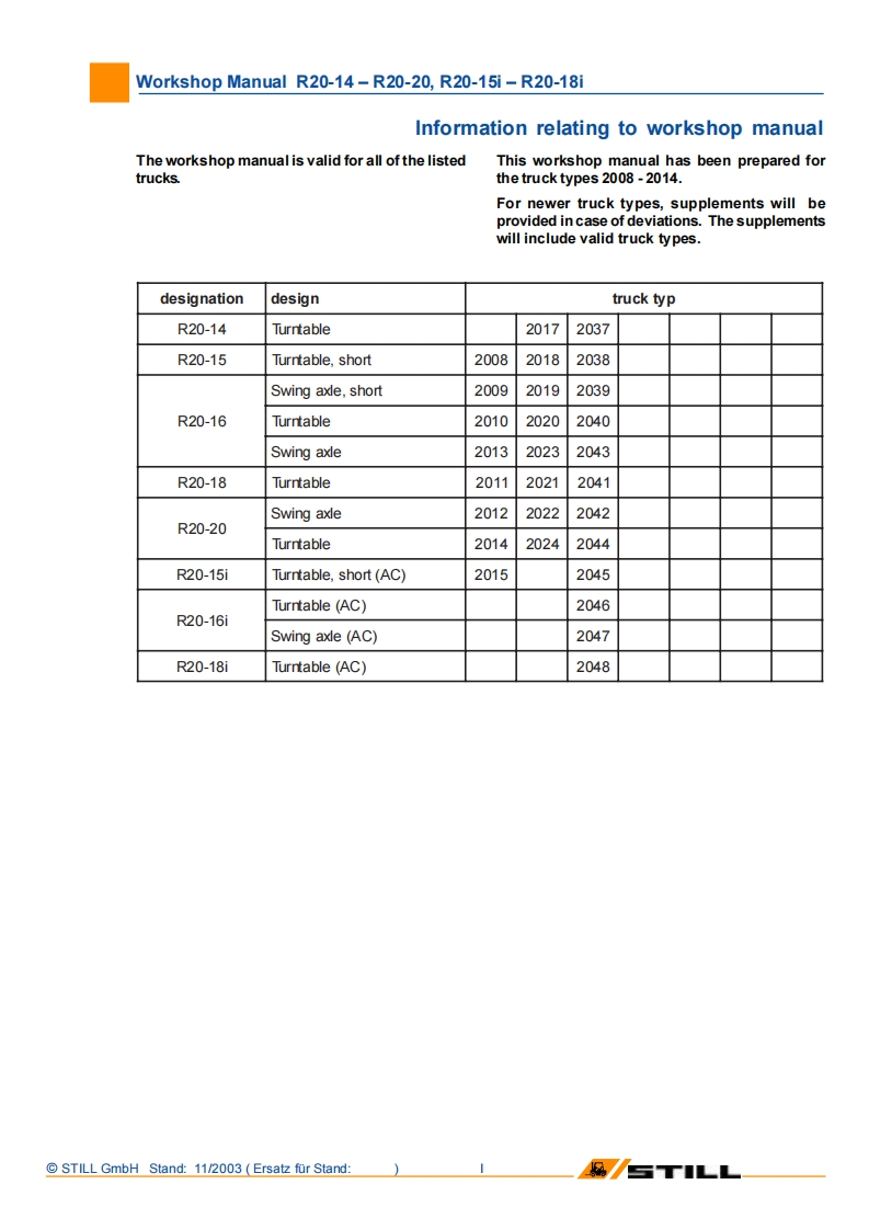 R20-15R20-16R20-18R20-20Elektro GabelstaplerElectric Fork TruckChariot elevateur electriqueCarretilla elevadora elettrica1ILSW3LSASWerk-Work-ManuelManualstatt-shopd'Atelierde tallerhandbuchmanualR2017-2024R2037-2044R2008-2014R20151R2045I-2048Ident-Nr.164526 (en)STILLGm bH