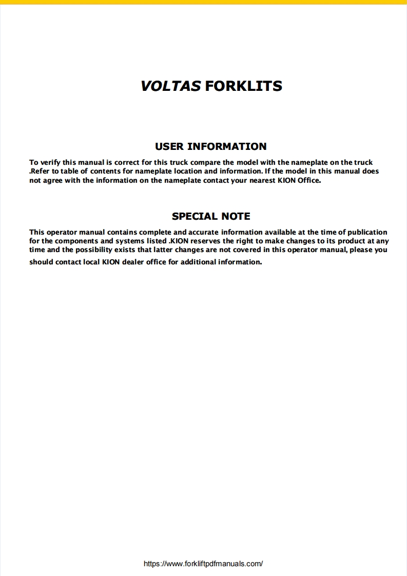 KION IndiaKIONG R OU PSafety,Operation PreventiveMaintenance ManualModel-EVX1500/2000,EVX2500/3000(MAXSVL7OA30PART NO MHOMEVXM001VALID FOR TRUCK NO:KION India Pvt.Ltdhttps://www.forkliftpdfmanuals.com/