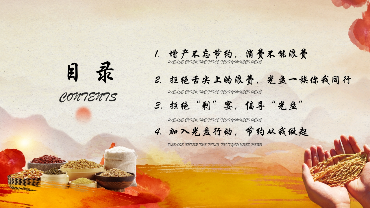 勤俭节约珍惜粮食拒绝浪费-07348072@abc4小时前发布关注私信58.82MB19页020勤俭节约珍惜粮食拒绝浪费-07此内容为付费资源,请付费后查看¥9¥20黄金会员免费钻石会员免费立即购买您当前未登录!建议登陆后购买,可保存购买订单付费资源 第1页 / 共19页 第2页 / 共19页 试读已结束,还剩17页,您可下载完整版后进行离线阅读 THE END初中教育小学教育高中教育 文本预览 珍·惜·粮·食·节·约·粮·食·光·盘·行·动珍憤粮食拒绝浪费光盘行动,拒绝剩宴;拒绝浪费,从我做起。汇报人:XXX汇报时间: 查看更多 收起部分 喜欢就支持一下吧收藏