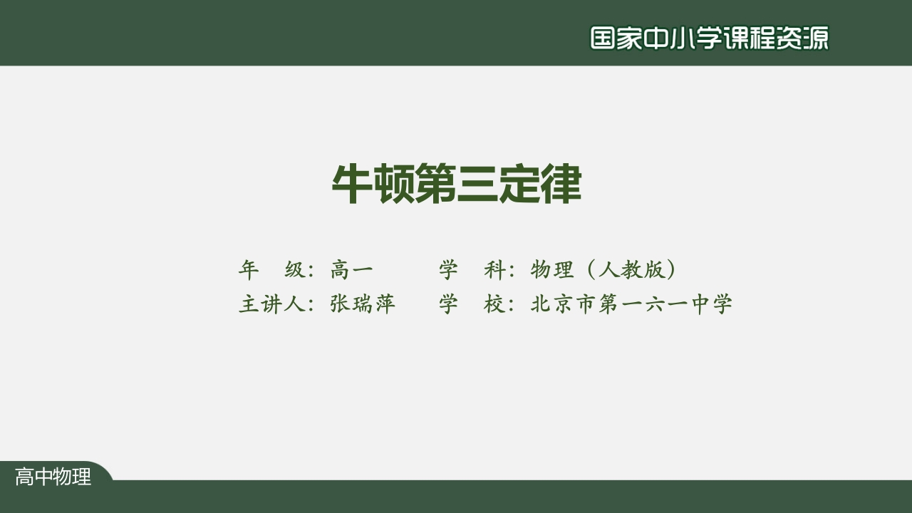 1105高一【物理(人教版)】牛顿第三定律-知识讲座课件348072@abc12小时前发布关注私信10.87MB29页0201105高一【物理(人教版)】牛顿第三定律-知识讲座课件此内容为付费资源,请付费后查看¥9¥20黄金会员免费钻石会员免费立即购买您当前未登录!建议登陆后购买,可保存购买订单付费资源 第1页 / 共29页 第2页 / 共29页 试读已结束,还剩27页,您可下载完整版后进行离线阅读 THE END初中教育高中教育 文本预览 国家中小学课程资源牛顿第三定律年级:高一学科:物理(人教版)主讲人:张瑞萍学校:北京市第一六一中学 查看更多 收起部分 喜欢就支持一下吧收藏