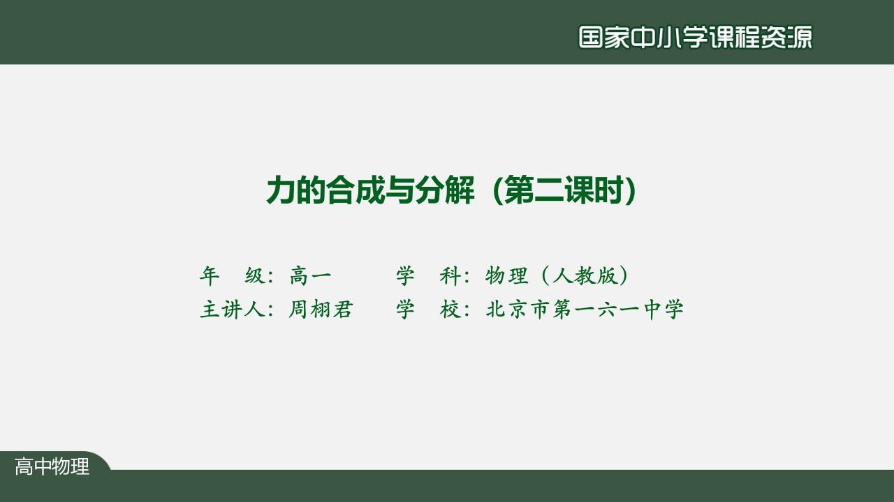 1112高一【物理(人教版)】力的合成与分解(第二课时)-知识讲座课件348072@abc15小时前发布关注私信1.28MB20页0461112高一【物理(人教版)】力的合成与分解(第二课时)-知识讲座课件此内容为付费资源,请付费后查看¥9¥20黄金会员免费钻石会员免费立即购买您当前未登录!建议登陆后购买,可保存购买订单付费资源 第1页 / 共20页 第2页 / 共20页 试读已结束,还剩18页,您可下载完整版后进行离线阅读 THE END初中教育高中教育 文本预览 国家中小学课程资源力的合成与分解(第二课时)年级:高一学科:物理(人教版)主讲人:周栩君学校:北京市第一六一中学 查看更多 收起部分 喜欢就支持一下吧收藏