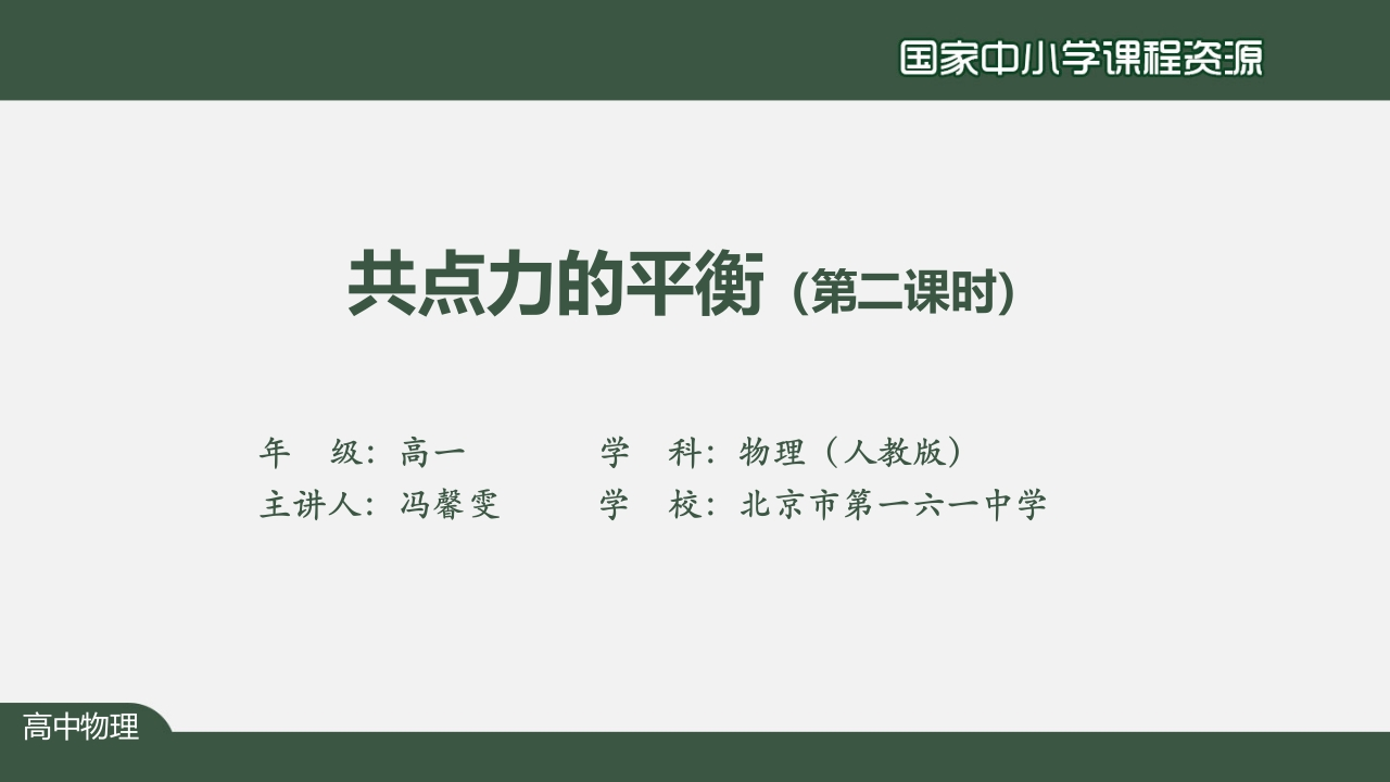 1119高一【物理(人教版)】共点力的平衡(第二课时)-知识讲座课件348072@abc23小时前发布关注私信4.07MB28页0341119高一【物理(人教版)】共点力的平衡(第二课时)-知识讲座课件此内容为付费资源,请付费后查看¥9¥20黄金会员免费钻石会员免费立即购买您当前未登录!建议登陆后购买,可保存购买订单付费资源 第1页 / 共28页 第2页 / 共28页 试读已结束,还剩26页,您可下载完整版后进行离线阅读 THE END初中教育高中教育 文本预览 国家中小学课程资源共点力的平衡(第二课时)年级:高一学科:物理(人教版)主讲人:冯馨雯学校:北京市第一六一中学 查看更多 收起部分 喜欢就支持一下吧收藏