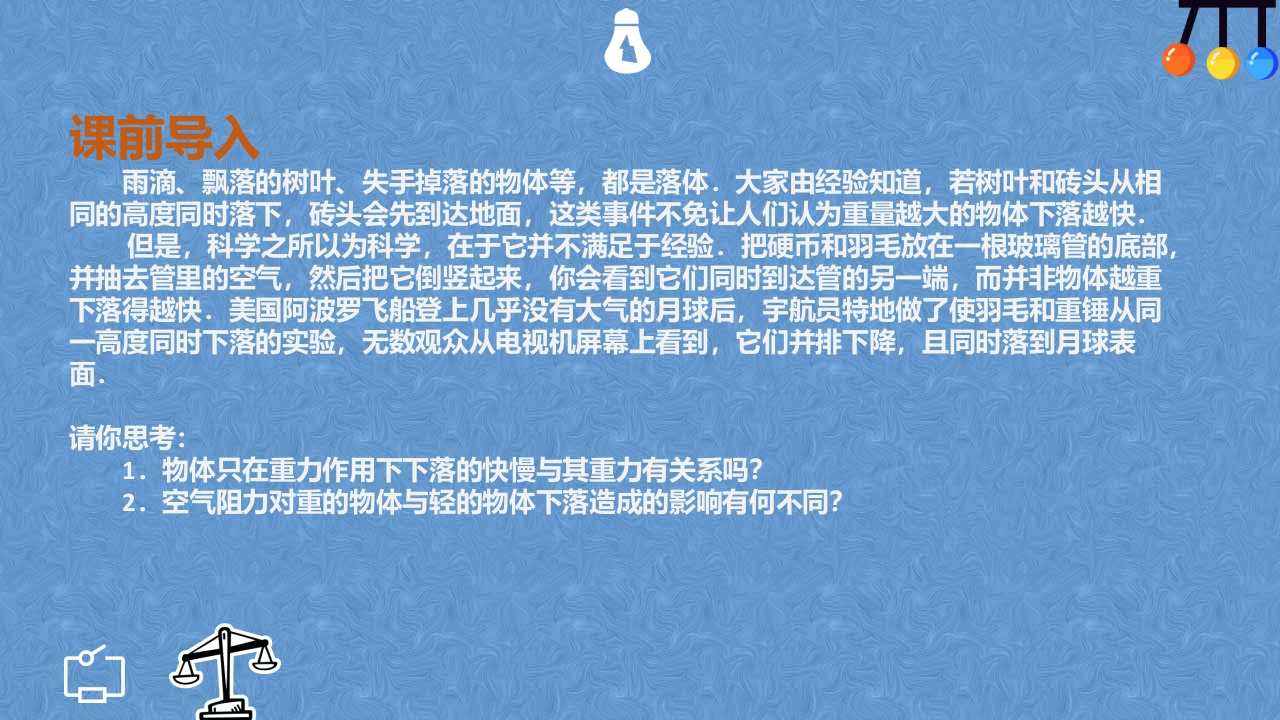 2.4自由落体运动—【新教材】人教版(2019)高中物理必修第一册知识讲座课件348072@abc昨天发布关注私信0.57MB18页0442.4自由落体运动—【新教材】人教版(2019)高中物理必修第一册知识讲座课件此内容为付费资源,请付费后查看¥9¥20黄金会员免费钻石会员免费立即购买您当前未登录!建议登陆后购买,可保存购买订单付费资源 第1页 / 共18页 第2页 / 共18页 试读已结束,还剩16页,您可下载完整版后进行离线阅读 THE END初中教育高中教育 文本预览 人教版必修2.4自落体运动充满空气抽出一部分图气直里g爵 查看更多 收起部分 喜欢就支持一下吧收藏