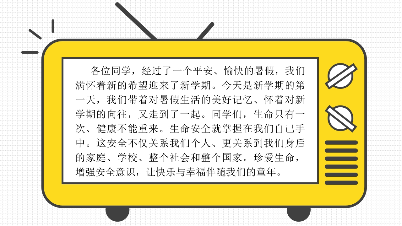小学开学第一课班会05348072@abc9天前发布关注私信9.14MB26页023小学开学第一课班会05此内容为付费资源,请付费后查看¥9¥20黄金会员免费钻石会员免费立即购买您当前未登录!建议登陆后购买,可保存购买订单付费资源 第1页 / 共26页 第2页 / 共26页 试读已结束,还剩24页,您可下载完整版后进行离线阅读 THE END初中教育小学教育高中教育 文本预览 第课【安全行为习惯养成教育】⑥主题班会。oBACK TO SCHOOL主持人:Xxx时间明年月 查看更多 收起部分 喜欢就支持一下吧收藏