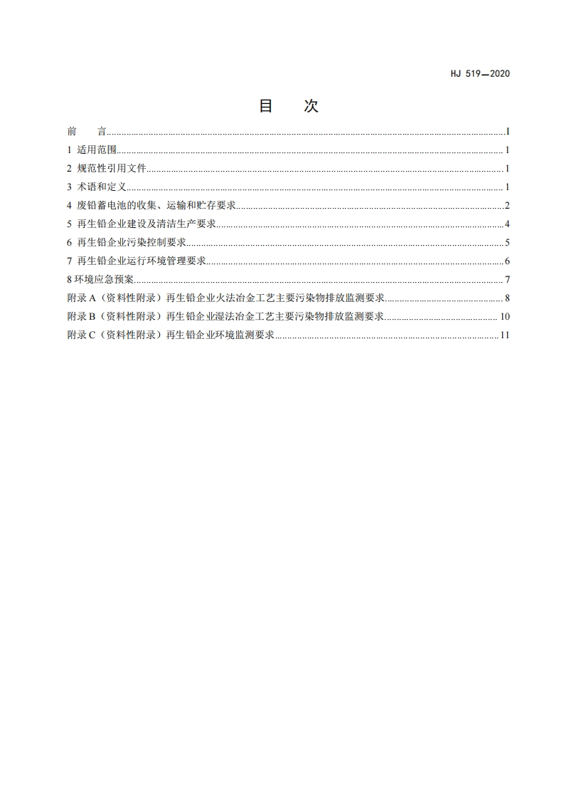 废铅蓄电池处理污染控制技术规范(HJ-519-2020-代替-HJ-519-2009)348072@abc2个月前发布关注私信0.38MB14页0397废铅蓄电池处理污染控制技术规范(HJ-519-2020-代替-HJ-519-2009)此内容为付费资源,请付费后查看¥9¥14黄金会员免费钻石会员免费立即购买您当前未登录!建议登陆后购买,可保存购买订单付费资源 第1页 / 共14页 第2页 / 共14页 试读已结束,还剩12页,您可下载完整版后进行离线阅读 © 版权声明文章版权归作者所有,未经允许请勿转载。THE END管理学类 文本预览 HJ中华人民共和国国家环境保护标准HJ519-2020代替HⅢ519-2009废铅蓄电池处理污染控制技术规范Technical specification of pollution control for treatment of waste lead-acidbattery(发布稿)本电子版为发布稿,请以中国环境出版集团出版的正式标准版本为准。2020-03-26发布2020-03-26实施生态环境邵发布 查看更多 收起部分 喜欢就支持一下吧点赞7 分享QQ空间微博QQ好友海报分享复制链接收藏