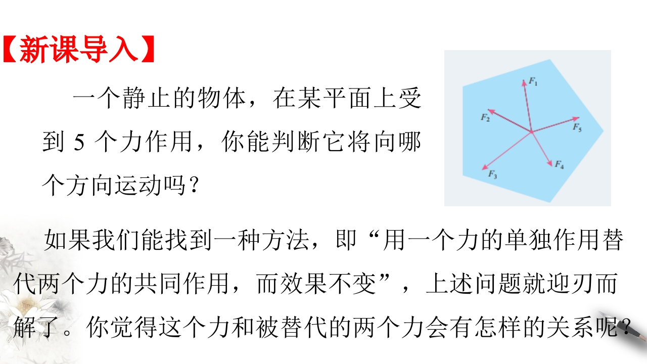 【新教材精创】3.4力的合成和分解知识讲座课件(2)-人教版高中物理必修第一册(共45张PPT)348072@abc17小时前发布关注私信0.73MB44页024【新教材精创】3.4力的合成和分解知识讲座课件(2)-人教版高中物理必修第一册(共45张PPT)此内容为付费资源,请付费后查看¥9¥20黄金会员免费钻石会员免费立即购买您当前未登录!建议登陆后购买,可保存购买订单付费资源 第1页 / 共44页 第2页 / 共44页 试读已结束,还剩42页,您可下载完整版后进行离线阅读 THE END初中教育高中教育 文本预览 人教版必修第一册第三章相互作用一力3.4力的合成和分解 查看更多 收起部分 喜欢就支持一下吧收藏