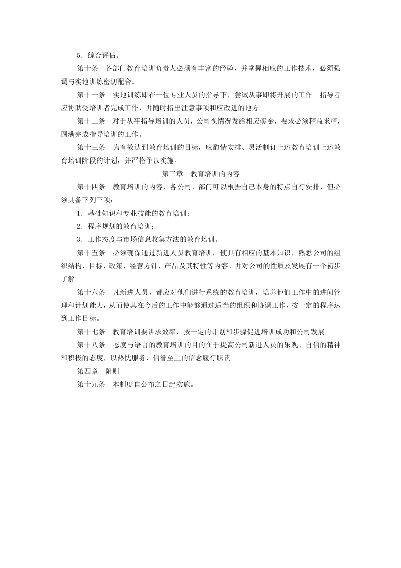 岗前人员培训制度第一章总则第一条岗前培训的目标是使新进出口员了解本公司情况及规章制度,便于新进人员能更快胜任未来工作并遵守规定。第二条凡新进人员必须参加本公司举办的新进人员岗前培训,其具体实施办法依本制度执行。第三条岗前培训的内容包括如下几个方面:1.公司创业史:2.公司业务:3.公司组织机构:4.公司管理制度:5.所担任业务工作情况、业务知识。第四条凡新进人员先进行五至八天培训,每隔二周举行一次。第五条新人员的培训,人事部门应事先制定日程安排计划表,培训进度记录及工作技能评定标准表第二章培训阶段第六条对于新进人员的岗前培训,按工作环境与程序可分为三个阶段:1.公司总部的培训:2.主管部门的培训:3.实地训圳练。第七条公司总部的培训须重点进行以下各项:1.公司状况:2.参观公司的各部门及其本人未来的工作岗位环境:3.介绍其岗位特征及如何与其他部门配合:4.熟悉公司产品的性能、包装及价格:5.市场销售情况分析:6.对市场上同类产品及厂家要有相应的了解:7.聘用专家实施口才培训。第八条各部门的教育培训负责人必须是新进人员的未来主管和实地训练负责人。第九条各部门教育培训的重点在于实际操作技术的培训,其要点如下:1.每天的日常工作及可能的临时性业务:2.从事未来工作的技能及从事工作的方法:3.时间运筹和时间管理:4.工作任务达成率: