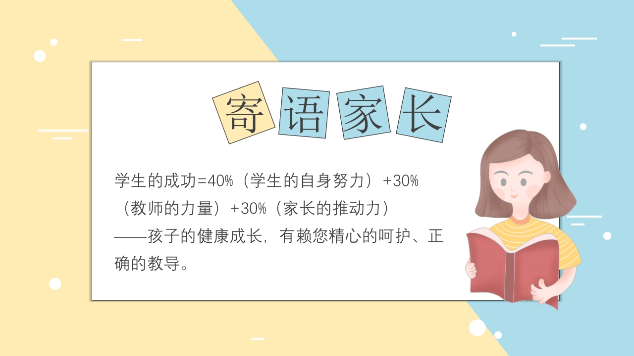 初中家长会知识讲座课件-03348072@abc前天发布关注私信9.24MB21页044初中家长会知识讲座课件-03此内容为付费资源,请付费后查看¥9¥20黄金会员免费钻石会员免费立即购买您当前未登录!建议登陆后购买,可保存购买订单付费资源 第1页 / 共21页 第2页 / 共21页 试读已结束,还剩19页,您可下载完整版后进行离线阅读 THE END初中教育高中教育 文本预览 工LDRENS EDUCATIO2初中漆长会沟通理解关注孩子成长班主任: 查看更多 收起部分 喜欢就支持一下吧收藏