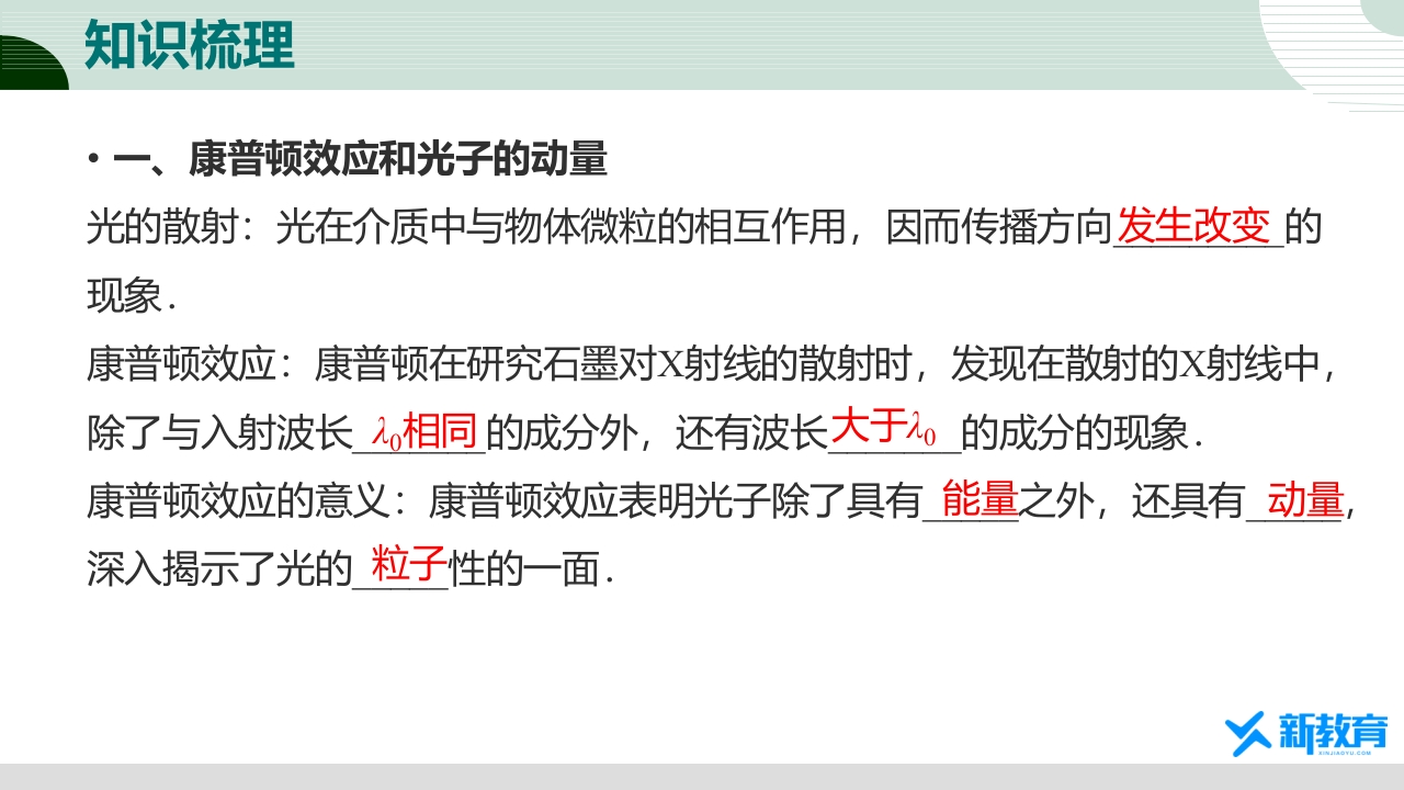 知识讲座课件24.2 第2课时 康普顿效应 光的波粒二象性348072@abc昨天发布关注私信0.28MB18页031知识讲座课件24.2 第2课时 康普顿效应 光的波粒二象性此内容为付费资源,请付费后查看¥9¥20黄金会员免费钻石会员免费立即购买您当前未登录!建议登陆后购买,可保存购买订单付费资源 第1页 / 共18页 第2页 / 共18页 试读已结束,还剩16页,您可下载完整版后进行离线阅读 THE END初中教育小学教育高中教育 文本预览 第四章)原子结构和波粒二象性第2课时」康普顿效应光的波粒二象性义新载育 查看更多 收起部分 喜欢就支持一下吧收藏