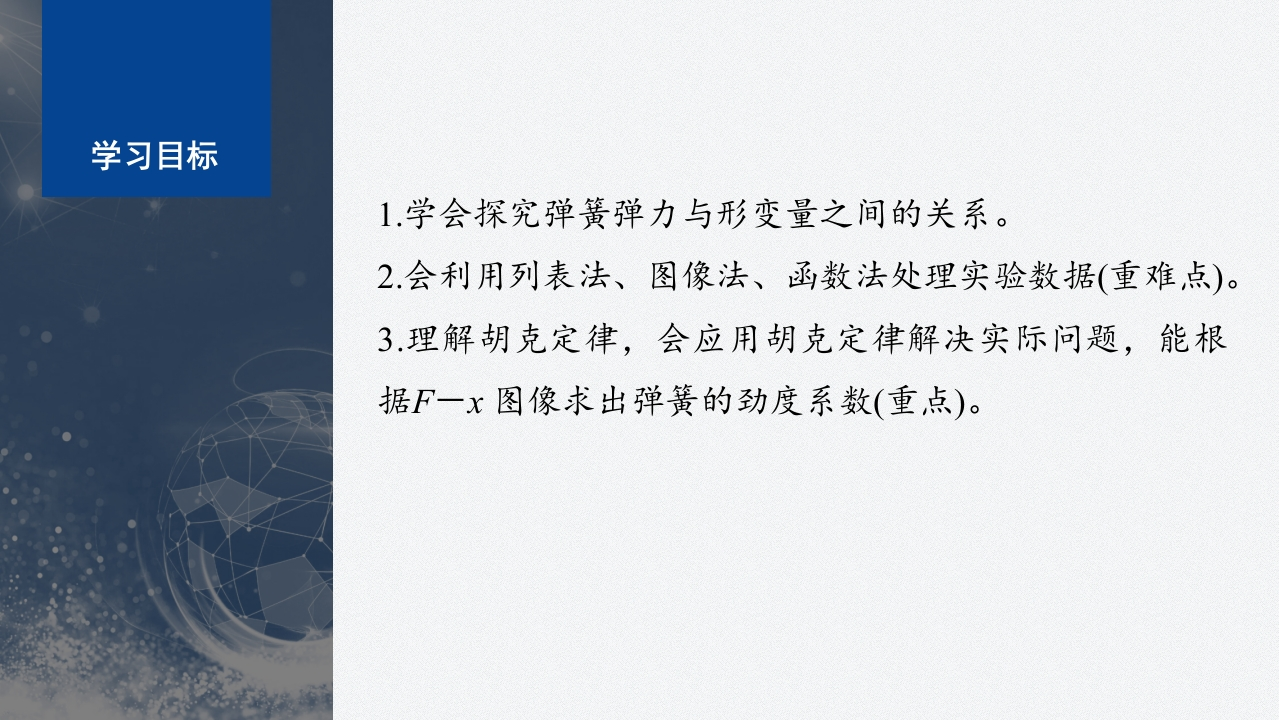 第三章 1 第2课时 实验探究弹簧弹力与形变量的关系 胡克定律348072@abc2个月前发布关注私信4.14MB65页050第三章 1 第2课时 实验探究弹簧弹力与形变量的关系 胡克定律此内容为付费资源,请付费后查看¥9¥20黄金会员免费钻石会员免费立即购买您当前未登录!建议登陆后购买,可保存购买订单付费资源 第1页 / 共65页 第2页 / 共65页 试读已结束,还剩63页,您可下载完整版后进行离线阅读 THE END初中教育小学教育高中教育 文本预览 第三章SAN☑HANG第2课时实验:探究弹簧弹力与形变量的关系{胡克定律 查看更多 收起部分 喜欢就支持一下吧收藏
