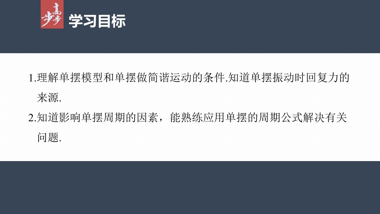 第二章4 单摆348072@abc5天前发布关注私信1.50MB63页035第二章4 单摆此内容为付费资源,请付费后查看¥9¥20黄金会员免费钻石会员免费立即购买您当前未登录!建议登陆后购买,可保存购买订单付费资源 第1页 / 共63页 第2页 / 共63页 试读已结束,还剩61页,您可下载完整版后进行离线阅读 THE END初中教育小学教育高中教育 文本预览 烤第二章DANR4单摆梳理教材夯实基础/探究重点提升素养/课时对点练 查看更多 收起部分 喜欢就支持一下吧收藏